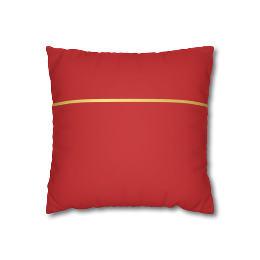 Faux Suede Square Pillowcase - Red with Golden Line